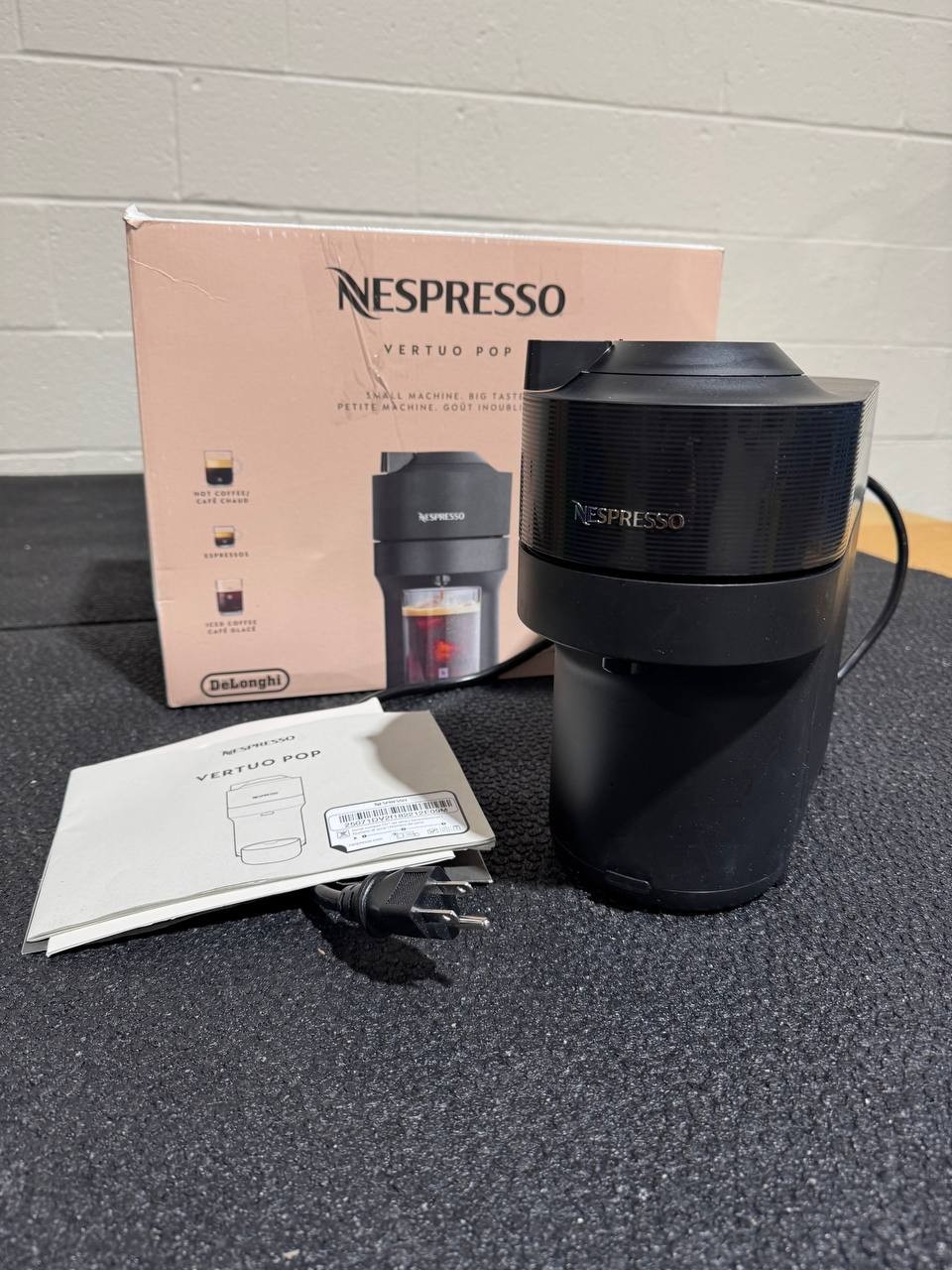 Nespresso Vertuo Pop Coffee & Espresso Maker – Black – Used (Very Good Condition) Enjoy café-quality coffee and espresso at home with the Nespresso Vertuo Pop by De’Longhi . This compact and modern machine uses Nespresso’s Vertuo technology to deliver rich flavor and smooth crema at the touch of a button, all in a sleek black finish . 🔹 Condition Note: This item is Used – Very Good Condition . It has been lightly used, fully tested, and thoroughly cleaned. The machine works perfectly. ⚠️ Important Note: The drip tray cup is missing . The machine can still be used without the drip tray , especially with taller mugs. Key Features Brews both coffee and espresso using Nespresso Vertuo capsules One-touch operation with automatic capsule recognition Rich crema and consistent extraction with Vertuo technology Compact, space-saving design Fast heat-up time Sleek black finish suitable for any kitchen Specifications Brand: Nespresso by De’Longhi Model: Vertuo Pop Product Type: Coffee & espresso maker Color: Black Capsule System: Nespresso VertuoLine Power Source: Electric (corded) Condition Used – Very Good Lightly used with minimal cosmetic signs of use Fully tested and functions as intended Clean with no leaks, odors, or performance issues Missing drip tray cup (does not affect operation) What’s Included Nespresso Vertuo Pop Coffee & Espresso Machine (Black) Water tank Power cord Not Included: ❌ Drip tray cup ❌ Coffee tasting / welcome capsule set Buyer Notes Compatible with Nespresso Vertuo capsules only Machine operates normally without the drip tray Photos show the exact item you will receive