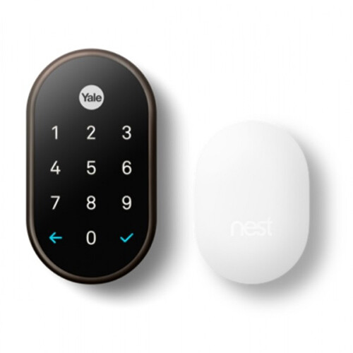 Electronic Express eBay Listing Description Google Nest x Yale Lock with Nest Connect Yale knows secure locks. Nest knows the connected home. Together, we've made a tamper-proof, key-free deadbolt that connects to the Nest app. Now you can lock and unlock your door from anywhere. Give people you trust a passcode, instead of a key. Lock and check your door status with your voice using the Google Assistant. And always know who comes and goes. Key Features: Secure smart lock for your front door; replaces the deadbolt lock you already have Keyless entry on the LED keypad so you can lock and unlock your front door without a key; keypad chimes play sounds to conform responses, such as locking, unlocking, or turning Privacy Mode on or off Let someone in from anywhere; unlock the door with your phone for easy guest access Give unique passcodes to family and guests and set a schedule to control when they work; when you don't want to be disturbed, Privacy Mode disables the keypad so it can't be unlocked with a passcode. Get alerts when someone locks or unlocks the door or tries to tamper with your smart door lock. Check the status of your door lock from anywhere and lock it with the Nest app; or use one-touch locking on your way out, or a passcode on the keypad lock; with auto-lock, it can lock automatically when you're away from home. Works with the Nest Hello video doorbell and Nest Cams to help keep your front door secure Easy to install; just switch out your deadbolt or call a Nest Pro to help Comes in three metal finishes to match your front door; choose from Satin Nickel, Oil Rubbed Bronze, or Polished Brass What's in the box: Nest x Yale Lock Strike Plate Mounting Screws 4 x AA Alkaline Batteries Nest Connect Quick Start Guide Installation Guide with Removable Door Template Specifications: Lock and Keypad: Sensors: Optical, Capacitive touch Audio: Talking Lock with Input Chime Lights: LED Keypad, Privacy Mode Indicator Wi-Fi: 802.15.4 (2.4 GHz) Colors: Satin Nickel Oil Rubbed Bronze Polished Brass Outside Temperature Range: –22° to 140°F (–30° to 60°C) Battery Temperature Range: 14° to 131°F (–10° to 55°C) Certification: Certified ANSI/BHMA A156.36, Grade 2 Green: RoHS compliant Power Requirement: 4 x AA Batteries (included) Dimensions (HxWxD): Lock: 7.03" x 2.78" x 2.02" Keypad: 4.59" x 2.59" x 0.8" Weight: 2 lbs. 4.2 oz. Nest Connect: Power Input: 100-240V ~ 50-60Hz 0.12A Lights: LED Light Color: White Operating Temperature: 32° to 104°F (0° to 40°C) Power Requirements: Built-In Rechargeable Lithium-Ion Battery Dimensions (HxWxD): 3.1" x 2.2" x 1.2" Weight: 0.98 oz. Meet the Key-Free Smart Lock The Nest x Yale Lack is a tamper-proof smart lock that replaces the deadbolt lock you already have. It has keyless entry, so you can lock and unlock your door from anywhere. Give people you trust a password. And always know who comes and goes. Most Locks are Made for Keys. This Lock is Made for People. The Nest x Yale Lock is key-free smart front door lock, so you don't have to worry about lost keys or picked locks. Let Someone in From Anywhere Connect to the Nest app to unlock the door with your phone for easy guest access. Give People You Trust a Passcode. Create unique passcodes for family and guests to use on the keypad lock, and decide when they work. Always Know Who Comes and Goes. Get an alert when someone locks or unlocks the door, or tries to tamper with your smart lock. Lock It Up. Lock the door from anywhere on your phone. Or use one-touch locking or a passcode on the way out. It's Secure and Tamper-Proof. If anyone tries to tamper with it or the batteries are low, you'll get an alert right away. How it Works. The Nest x Yale Lock connects to your Wi-Fi and the Nest app through Nest Connect (included in the box). You'll need it to lock and unlock your door remotely.