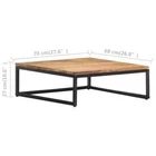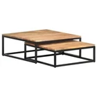 Add an industrial look to your living space with these wooden nesting coffee tables! The coffee table is made of solid acacia wood, which is a hardwood with dense grains. This beautifully-designed center table is stable, durable and eye-catching. Additionally, the exquisite craftsmanship and beautiful wood grains make every piece slightly different from the next. The black powder-coated iron base provides additional stability and sturdiness for the tables. Additionally, the small table can be stored underneath the larger one to save space. Important note: Colors and grains may vary from piece to piece, making each piece unique; the delivery is random. Material: Solid acacia with a natural finish, powder-coated iron Large table dimensions: 27.6" x 26.8" x 10.6" (L x W x H) Small table dimensions: 23.6" x 23.6" x 8.3" (L x W x H) Nesting tables Assembly required: No Delivery contains: 1 x Large table 1 x Small table Shipping Restrictions Due to the limited access of our couriers, this item cannot be delivered to the following locations: Alaska Federated States of Micronesia Guam Hawaii Marshall Islands Military Posts (APO / FPO) Palau Puerto Rico US PO BOX Virgin Islands Our customer support will contact buyers for orders with no shipment service, and these orders will be cancelled and fully refunded afterwards.