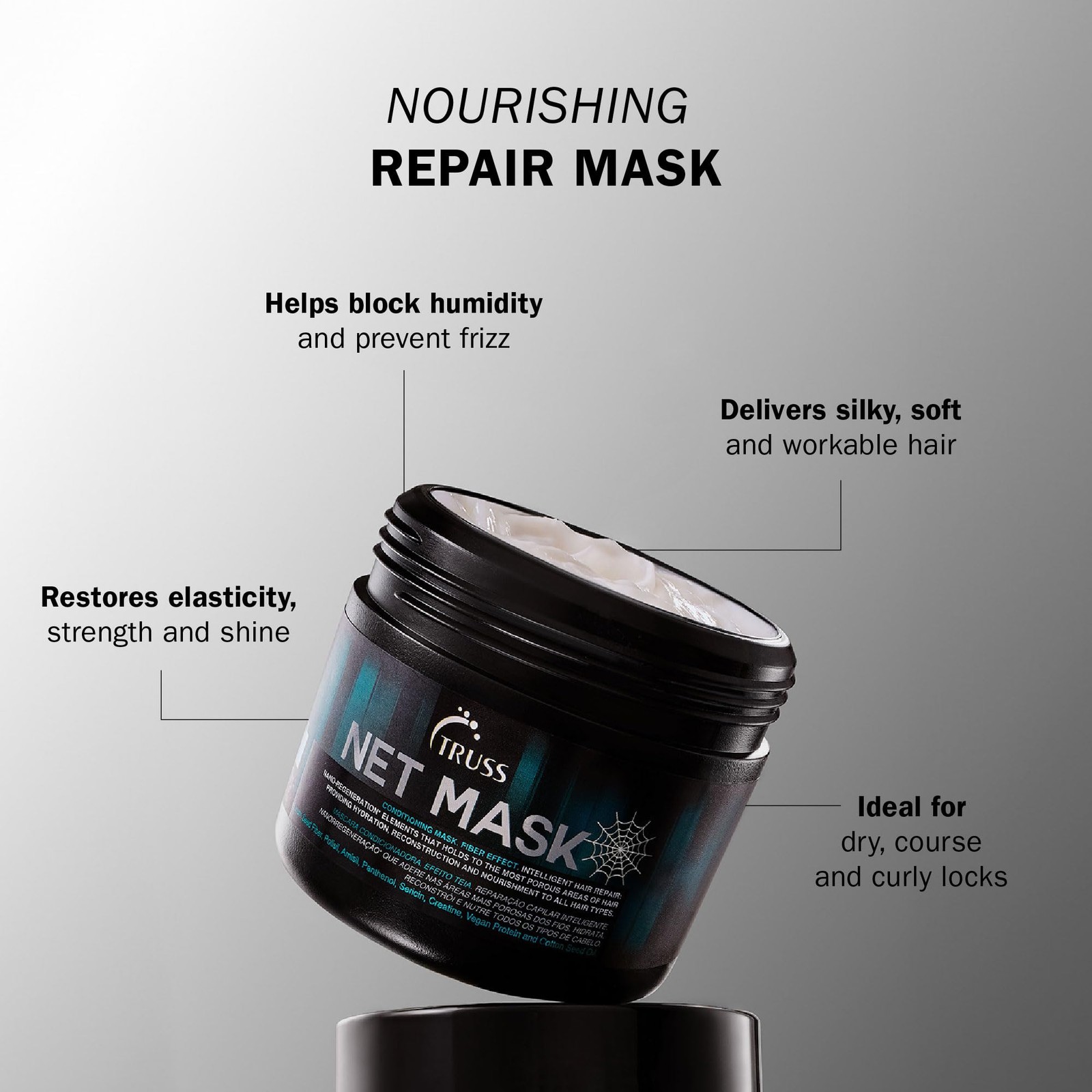 Net Mask is a deep conditioning hair mask designed to deliver intense hydration and hair damage repair treatment for all hair types. This moisturizing hair mask uses advanced nano-regeneration technology to penetrate deep into the hair shaft, replenishing lost protein mass and restoring elasticity, strength, and shine. Whether you're dealing with dry, brittle strands or need a curly hair mask for damaged curls, this hair conditioning mask provides salon-quality nourishment for visibly healthier hair. Formulated as a deep hydration hair mask, Net Mask helps lock in moisture while sealing the hair cuticles, ensuring long-lasting softness and frizz control. It works wonders as a dry hair mask, providing deep nourishment for chemically treated or heat-damaged hair. For those with wavy or curly textures, this deep conditioning hair mask for curly hair enhances curl definition while maintaining bounce and movement. The hair masque is perfect for restoring hydration, making it an excellent deep moisture hair mask for anyone looking to revive lifeless, dry hair. Ideal as a hair deep conditioning treatment, this hair strengthening mask reduces breakage and fortifies weak strands, making it a must-have repairing hair mask for damaged hair. The unique web effect formula ensures even distribution, allowing the deep conditioner hair mask to absorb efficiently and maximize its benefits. Whether you need a hair treatment for dry damaged hair, a damage repair hair mask, or hair treatment masks Net Mask is the perfect deep conditioning mask to revitalize and transform your locks. Safe for all hair textures, from straight to coiled, this strengthening hair mask enhances shine, smoothness, and manageability, leaving your hair luxuriously soft and radiant. Restore Balance - This soothing and hydrating hair mask was specially designed to nourish dry and coarse hair. It's especially useful as a hair mask for curly hair that has lost its natural texture because it targets the most porous parts of your hair to moisturize and define while adding body, bounce and shine. Nourishing Ingredients - Our hair repair mask uses natural proteins and keratin to rebuild color damaged hair. Similarly, Panethenol, cotton seed oil and flax seed fiber help hydrate your locks so they feel healthier and more manageable after every use, making it a great hair mask for dry hair. Intelligent Hair Repair - This deep conditioning hair treatment starts by locking in the moisture that curls need to block humidity and prevent frizz. An ideal curl mask for hair repair, it sinks into every strand, to ensure your hair stays silky, soft and workable. How to Use - Start by spreading the product across your palms, gently clap your hands together and then separate your hands to form the web effect and activate the formula. Whether you're using this as a curly hair mask or a hair repair treatment for damaged hair, massage it into wet, shampooed hair and leave in for 5-10 minutes before rinsing. It can be used as little as once a week, or after every shampoo. Trust - Today, hair care products can be found in more than 22 countries. They're used around the world in a wide range of salons to deliver everything from curly hair masks to an effective hair hydration treatment.