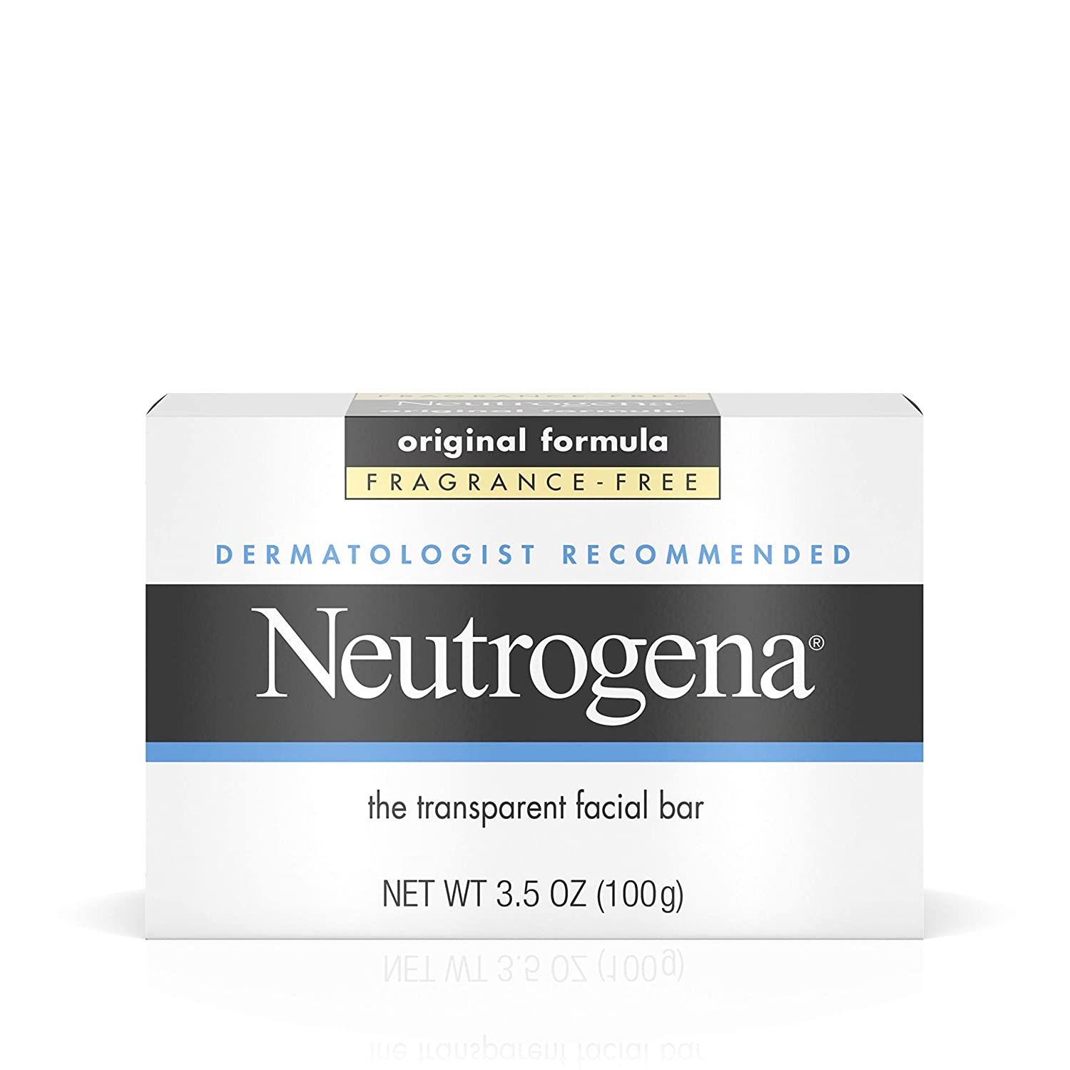 3.5-ounce Neutrogena Facial Cleansing Bar in Original Fragrance-Free Formula for gentle, daily facial cleansing from a dermatologist-recommended skin care brand This pure cleansing bar is designed for all skin types and lathers up to remove excess oil and gently cleanse skin Featuring the original Neutrogena formula, the face soap bar is glycerin-rich to attract moisture and contains no harsh detergents, dyes or hardeners that can irritate the skin Our face cleansing bar is exceptionally clean-rinsing without leaving behind any pore-clogging residue, for clear, healthier-looking skin The pure and gentle formula of this facial soap bar is fragrance-free, hypoallergenic and suitable for daily use Take care of your skin with Neutrogena Fragrance-Free Facial Cleansing Bar. Designed for daily cleansing for all skin types, the original formula of this transparent facial bar provides pure and gentle cleansing for clean, clear, healthier-looking skin. From a Dermatologist Recommended Brand, its glycerin-rich formula gently removes excess oil and then rinses clean without leaving behind any pore-clogging residue. Hypoallergenic and non-comedogenic, the facial soap bar is free of fragrances and harsh detergents, dyes, and hardeners, so it won't irritate skin.