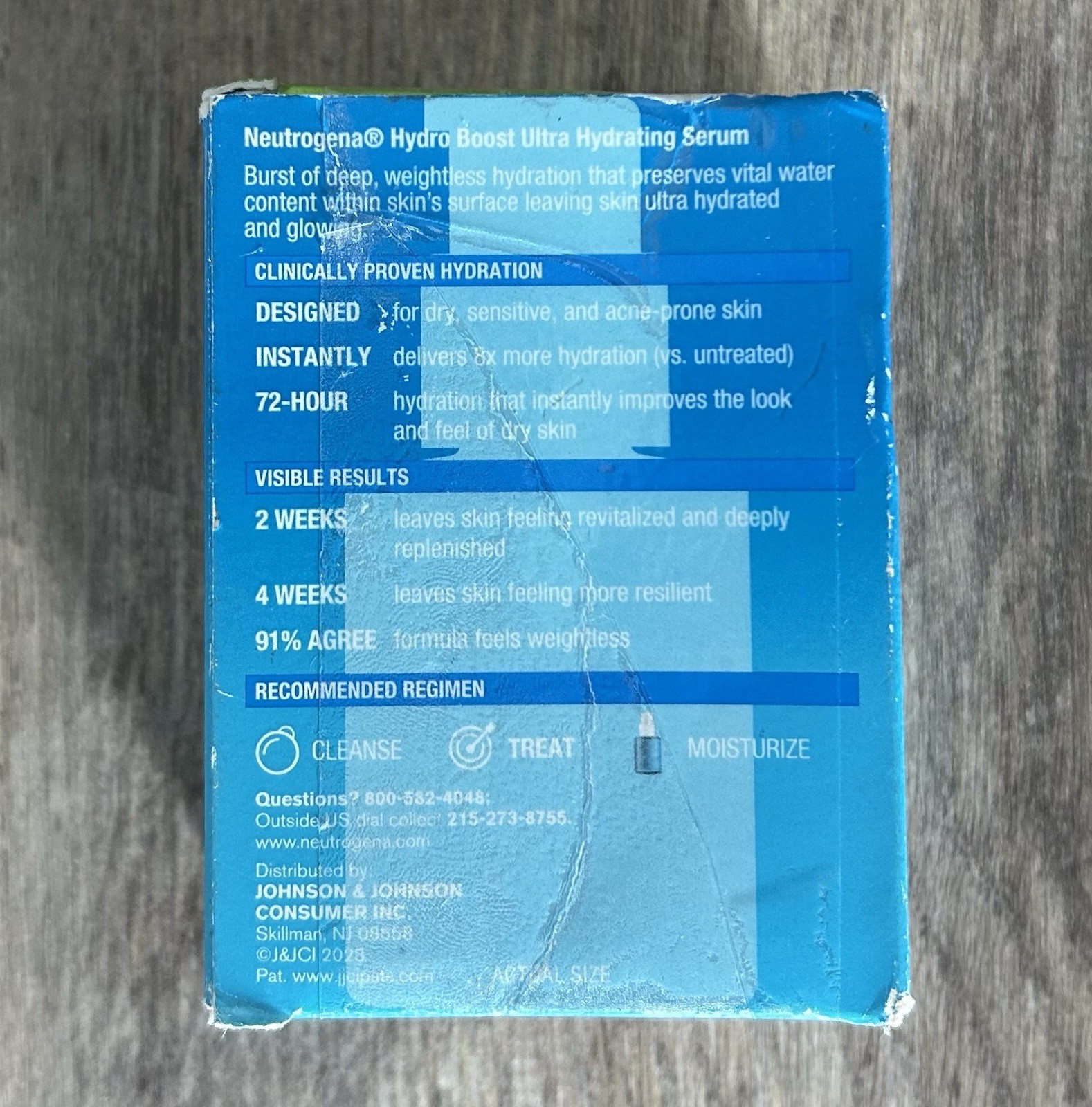 The Neutrogena Hydro Boost Ultra Hydrating Serum is a fragrance-free beauty product designed for daily use on the face. This serum, part of the Neutrogena Hydro Boost line, is formulated to provide intense hydration to all skin types. Made in the United States, this product comes in a 1 oz (29ml) size and has a period after opening of 12 months, ensuring its effectiveness and freshness for an extended time. Perfect for those looking to boost their skin's hydration levels and maintain a healthy glow.