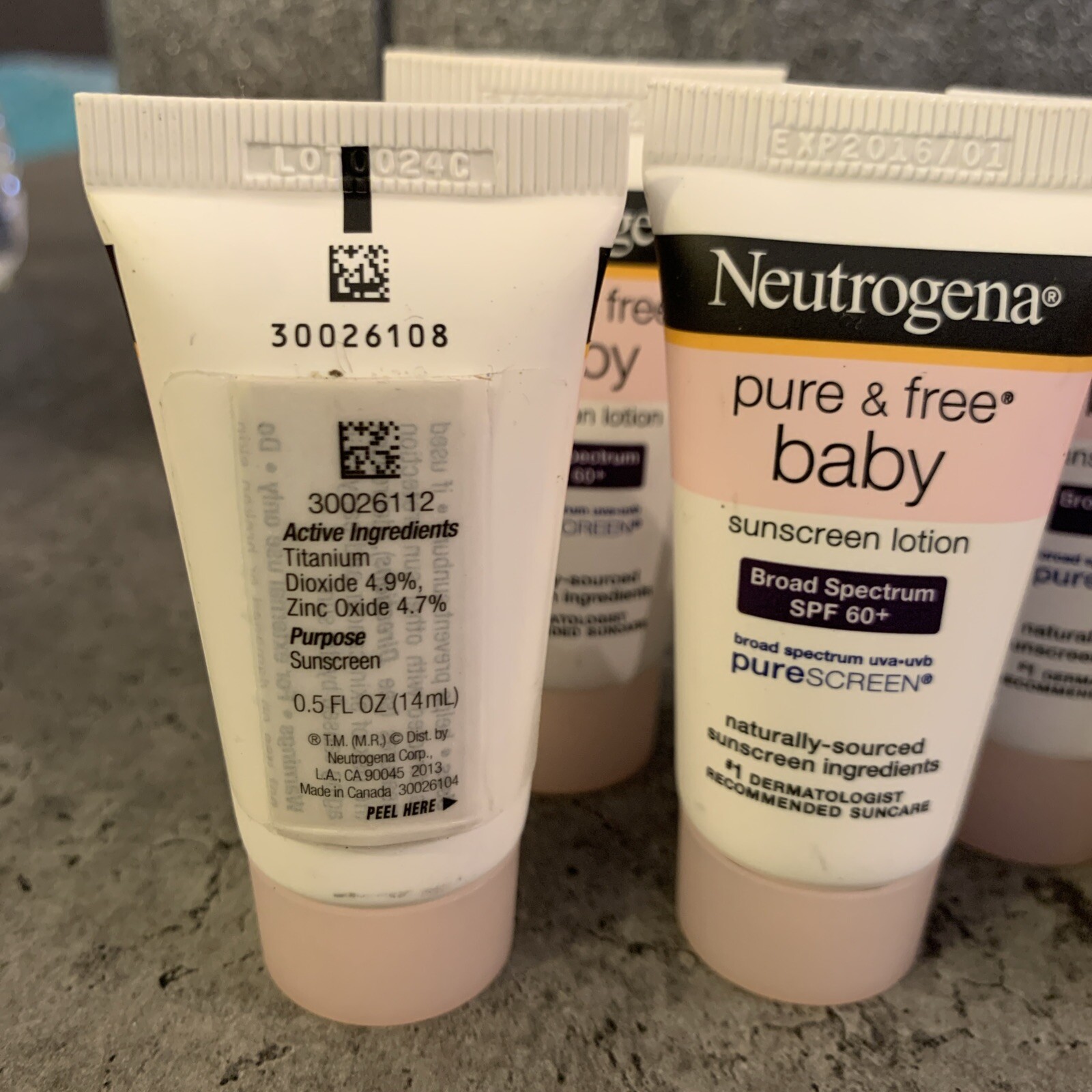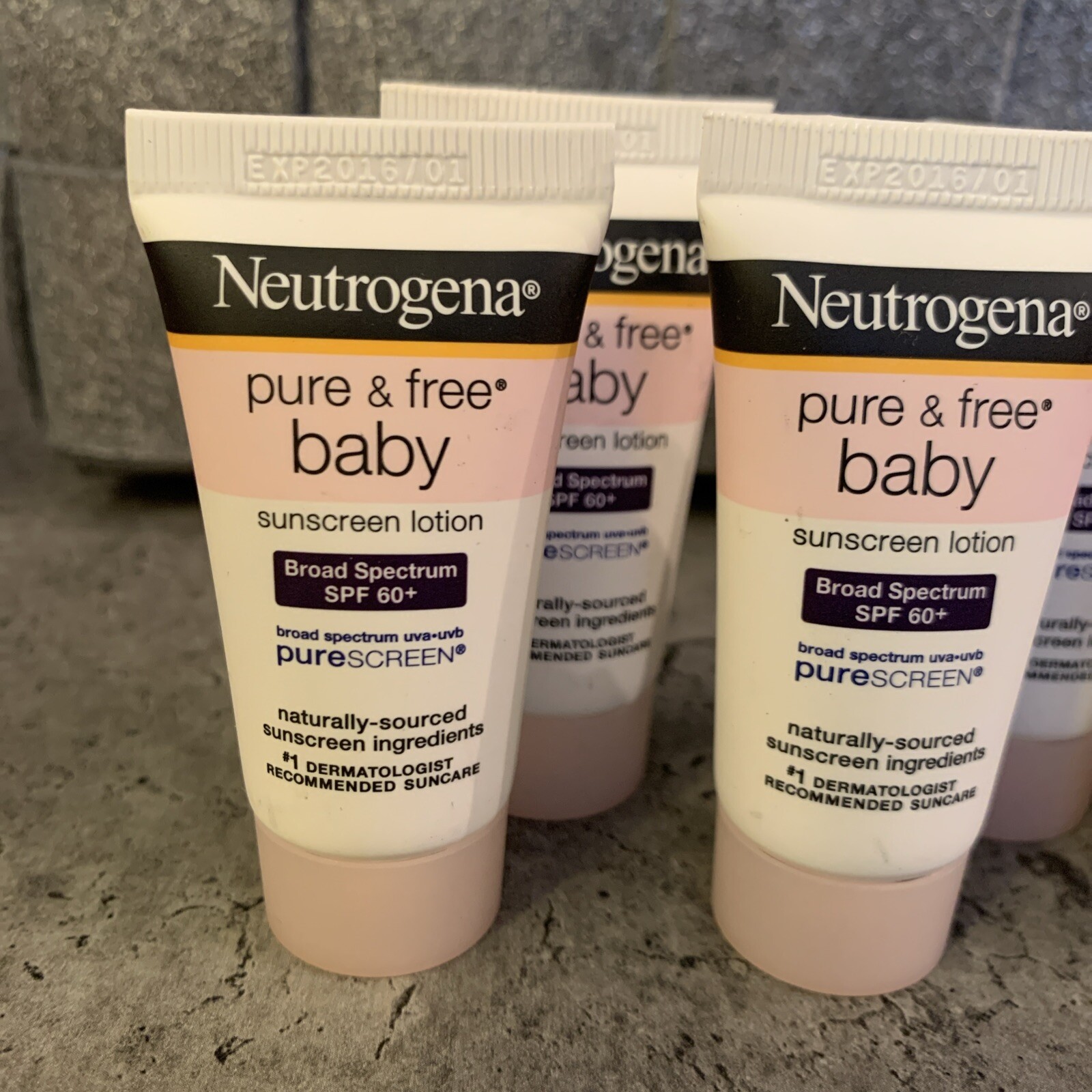 Listing is for 8 0.5oz travel size bottles of NEUTROGENA PURE & FREE BABY SUNSCREEN SPF 60+ WATER RESISTANT zinc oxide Item pictured is the item you will receive. Ships from a smoke-free pet free home.