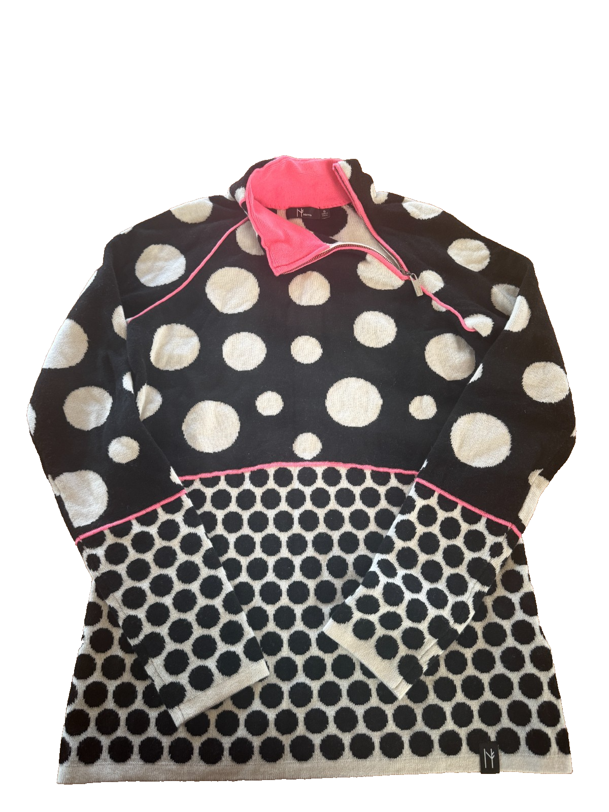 Stay warm and stylish on and off the slopes with this Neve Women’s Ski Sweater in a chic and on-trend black and white polka dot design . Known for their high-quality knitwear and classic alpine style, Neve sweaters offer exceptional warmth, comfort, and performance. This women’s size small sweater features a soft, cozy knit that’s perfect for winter activities or everyday cold-weather wear. Its bold polka dot pattern adds a fun, retro-inspired twist to traditional ski fashion. Measurements Pit to Pit 17.5 inches Length 26 inches Item Details Brand: Neve Style: Ski Sweater / Winter Knit Size: Women’s Small Color: Black & White Pattern: Polka dots Material: Merino wool blend Condition: Excellent pre-owned condition Features Warm, breathable knit ideal for skiing, snowboarding, or winter travel Soft, comfortable fabric with great stretch Classic alpine aesthetic with a playful modern twist Great for layering under coats or wearing as a statement top Perfect For ✔ Ski trips & apres ski ✔ Winter resorts ✔ Cozy cabin weekends ✔ Retro or alpine-inspired outfits ✔ Holiday and winter events