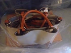 Never used Dooney & Bourke Brenna satchel/top handle bag still in plastic with paper stuffing inside. Must-have for any designer bag enthusiast. Smoky gray exterior, pebbled leather, and gold hardware accents. The bag has a magnetic closure and a brown leather handle/strap with a cross-body strap that is detachable. Gray cotton interior with inner pockets, outer pockets, a key clip, and an adjustable strap. The bag also has bottom studs for added protection. Dust bag included for safe keeping.