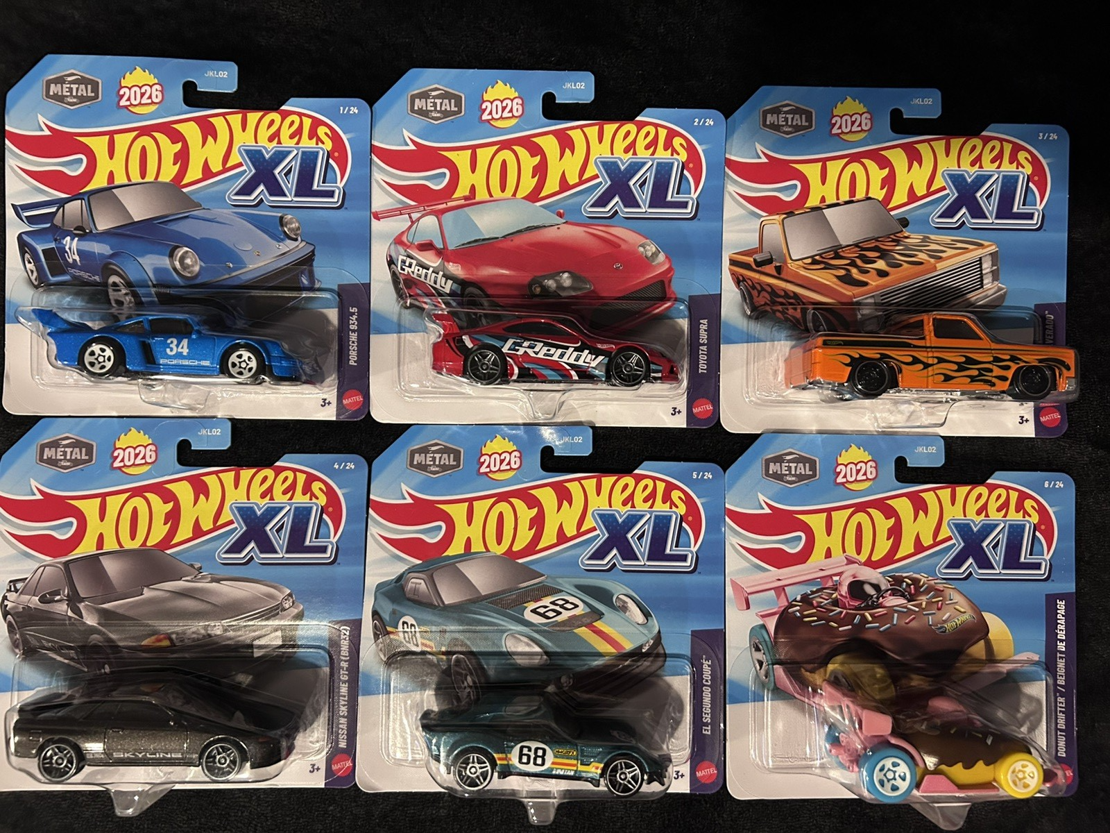 The New 2026 Hot Wheels XL Mix 1 COMPLETE Set includes a variety of diecast cars such as the Porsche Supra GTR, Chevy Donut, and El Segundo. These vehicles are part of the Hot Wheels XL series, with a 1:43 scale and colorful multi-color designs. Suitable for both boys and girls aged 17 years and up, these unopened boxes contain a Silverado model among other exciting cars from the 2026 collection. Perfect for collectors and fans of contemporary diecast vehicles, this set offers a mix of popular and unique models to enjoy. This set includes ALL 6 of the released cars, get a jump on your collection in one spot!!