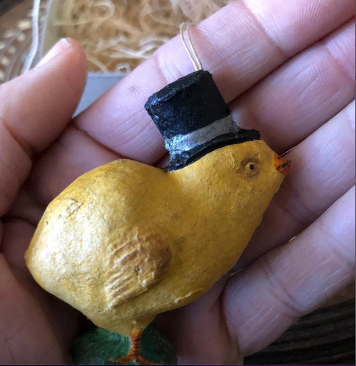 Cute little Christmas Dresden paper ornament. Here's a dapper little chick with a top hat, Monocle and cane ! He’s made completely by hand. Glass eyes, and has a string for hanging and stamped with the DC (Dresden Cottage!) Measures 2 1/4” high. Take a look at all my other Dresdens. Please message me with any ?S. Thanks for looking! Order today to get by Cost to ship: $ 4.50 Ships from Glendale, CA Etsy offsets carbon emissions from shipping and packaging on this purchase. Etsy Purchase Protection: Shop confidently on Etsy knowing if something goes wrong with an order, we've got your back for all eligible purchases — see program terms Owner of TheDresdenCottage Message This seller usually responds within a few hours. Other reviews from this shop | 5 out of 5 stars (360)