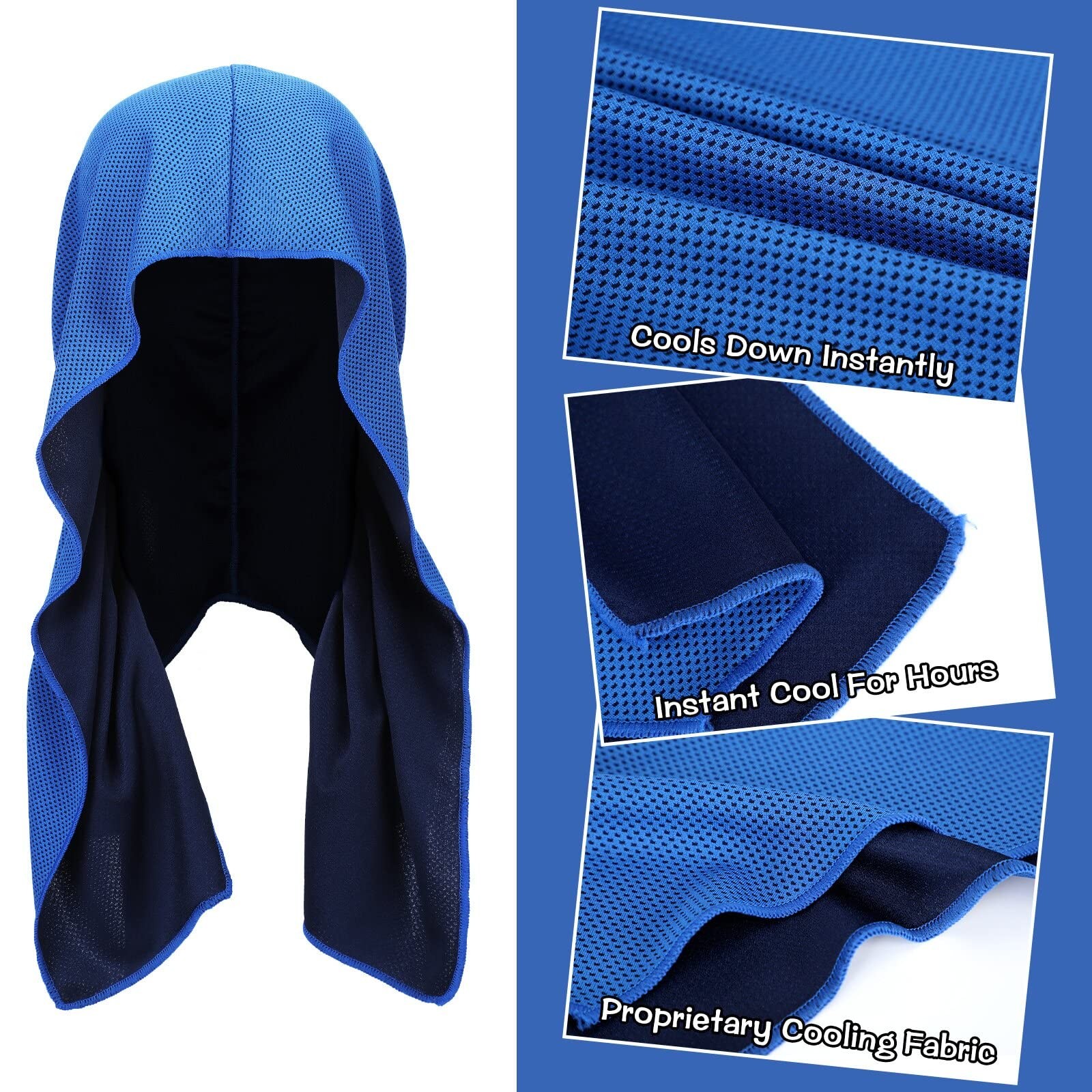 Features: Practical and thoughtful gift choice: Camping towels can make lovely gifts for your parents, children, wives, girlfriends, sisters, classmates and neighbors at their Christmas, Thanksgiving or holiday parties, expressing your love and care for them. Easy to carry: The cooling neck towel can be folded and put in your gym bag, backpack, carry bag, without taking up much space, easy to pack and carry to the gym, park, pool, and so on. Specifications: Material: polyester Color: classic color Size: one size Package includes: 6 x Cooling neck towel Notes: Manual measurement, please allow slight errors on size. The color may exist a slight difference due to different screen displays. Ample Quantity: you will receive 6 pieces of cooling hoodie towels come with gray, royal blue, black, so the quantity is rich to satisfy your use and replacement, or you can share them with your friends Cool and Absorbent Design: the cooling towels are designed with hoodie, so that they can avoid your face from sun when you are in outdoor as well as your neck, which can make you feel cool; Even in case of water or sweating, it can cool the temperature in a short time, making you feel continuously cool Sweat Absorption and Comfort: this sunscreen cooling hoodie is made of polyester, have a good sweat absorption function to keep your head dry, not sultry, very breathable, and can keep you in good use from the moment you wear it Flexible Usage: you can take this monolayer cooling towels for your neck and head as a sunscreen measure, or put it under your helmet; In addition to these uses, you can also use it as a decoration for clothes; Wearing it in a short sleeved or sleeveless vest will make you look cooler Applicable Occasions: you can use cooling neck wraps when running, or when playing basketball, cycling, mountaineering and other outdoor sports scenes; It can bring you a refreshing feeling