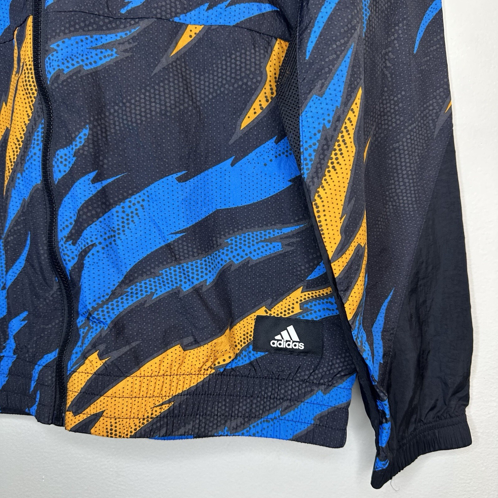 New Adidas Windbreaker Jacket Trvl Tiger Print Multicolor Camo Full Zip Hooded Coat Size S For full details, please check out my photos they are part of the description. Feel free to ask any questions you may have. I answer most questions instantly! Reasonable offers considered. FAST SHIPPING! #934