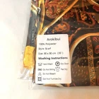 This is a brand new, still in package Arokibui satin square wrap scarf made of 100% polyester with a real silk feel. It’s beautiful pattern is displayed in bold colors from reds and oranges to yellow golds with blue winged birds on a black background. It measures 35x35” and is hand wash only. This can be used as a neck fashion scarf, a bandana, a hair wrap, or a headdress.