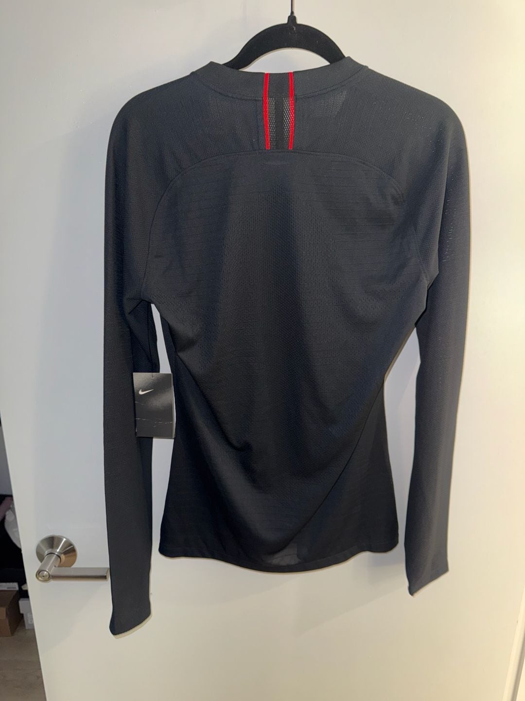 Atletico Madrid away jersey from the 2019-2020 season by Nike. Size medium with the classic navy colorway from that year. This is an authentic match-style shirt with the Nike swoosh and Atletico Madrid crest on the chest. Condition is New. Great for fans of Atletico Madrid or collectors of that season's kits. Perfect for wearing to matches, training, or casual wear. Ships quickly.