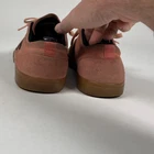 The New Balance Numeric 345 Sneakers are stylish and comfortable shoes for men in a vibrant pink color. These lace-up sneakers feature a leather upper, cushioned insole, and breathable canvas lining, making them suitable for activities like walking, school, and skateboarding. With a low-top shoe shaft style and rubber outsole, they offer both support and flexibility for everyday wear in the summer, fall, and spring seasons. The classic design, colorful appearance, and New Balance logo make these sneakers a great choice for casual or activewear outfits In Good Condition. Some Light Staining to Upper. Minimal Wear to Soles. See All Photos.