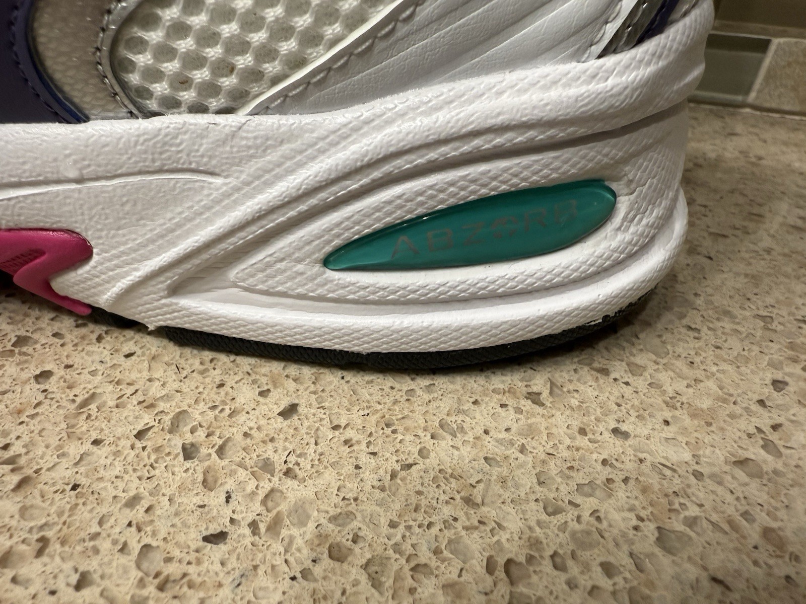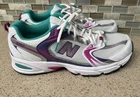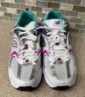 The New Balance 530 Men's Sneakers in White/Purple/Teal, size 10.5, are a stylish and functional choice for active individuals. With features like arch support, lightweight design, comfort, and breathability, these sneakers are suitable for various activities such as running, jogging, walking, and training. The rubber outsole provides traction, making them ideal for all seasons. The lace-up closure and foam insole ensure a secure and comfortable fit, while the synthetic and rubber upper material adds durability. The colorful design and sporty theme make these sneakers a trendy choice for men looking for quality athletic footwear. 👉👉Worn once, like new👈👈 6635