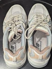 The product is a pair of New Balance Men's 530 sneakers in beige and white, featuring a lace-up closure and a low-top shoe shaft style. These lifestyle casual sneakers are designed for comfort and slip resistance, suitable for various seasons including winter, summer, fall, and spring. The shoes have a rubber outsole and are made with synthetic upper material and foam insole, providing durability and support for activities such as walking, basketball, and running & jogging. With a retro 80s theme and a medium size fitting, these sneakers are a versatile option for everyday wear.