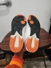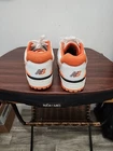 ⅘Elevate your sneaker game with these New Balance 550 sneakers in Syracuse Orange, white, and black. These low-top athletic shoes have a lace-up closure and a comfortable foam insole. The rubber outsole provides good grip on the ground, while the fabric lining ensures your feet stay warm during colder months. These sneakers have a vintage look that will make you stand out, whether you're going to a festival, school, or a special occasion. The New Balance 550 series is perfect for men who love basketball and want a stylish shoe that doesn't compromise on comfort. Get your hands on this designer sneaker today and add a touch of retro vibe to your wardrobe. Look at all pictures for total condition of sneakers. Need cleaning.