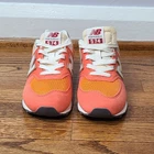 New Balance 574 Boys Size 1 Wide Orange Sneakers Gulf Red. These shoes are in excellent pre-owned condition and were only worn once. There's some superficial/cosmetic marks on the toe and heel of one shoe, otherwise minimal signs of wear. Wide Width, lace up Sneakers. Please see pictures for condition. Does not come with a shoebox.