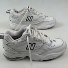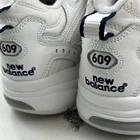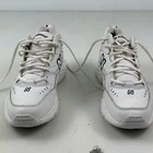 The New Balance 609 White Blue Cross Training Shoes for Men in size 10D feature a low top style with a tie closure. They are designed as athletic sneakers with a chunky silhouette and a white and blue color combination. The shoes belong to the New Balance 600 Series and are suitable for various activities including gym training, walking, school, cross-training, and running. Made with leather uppers, foam insoles, and rubber outsoles, these shoes provide comfort and support for year-round use in winter, summer, fall, and spring seasons.