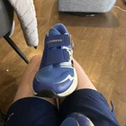 This is a pre-owned pair of men's New Balance sneakers in size 6.5. The sneakers feature a blue color and are designed in an athletic style. Notably, they come with Boa technology for a personalized fit.