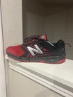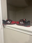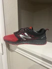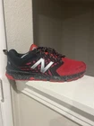 These are New Balance FuelCore Nitrel All Terrain Running Shoes in size 12 D width. They are black and red colorblock sneakers with a lace-up closure. Designed for activewear and casual occasions, they feature cushioned comfort for fall and spring seasons. The synthetic upper material and foam insole provide support for activities like running, walking, and cross-training.