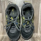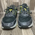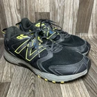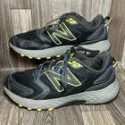 The New Balance Men's MT410 V7 Trail Running Shoes in Black & Neon Yellow are a size 12 4E width sneaker designed for both running and hiking activities. Featuring a lace-up closure, cushioned comfort, and breathable materials, these shoes are perfect for all-season wear. The outsole is made of rubber for durability and traction, with a low-top shoe shaft style for a sporty look. The bold color combination and sporty design make these shoes a stylish and functional choice for active individuals.