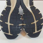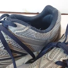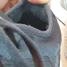 1 pair has some heel rub wearing a large abrasion on outside edge of sole, the other pair has significant sole wear. Both are still usable and comfortable.