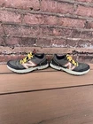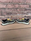 Upgrade your outdoor and athletic style with these New Balance Fresh Foam X Hierro v7 Trail Running Shoes. Designed with a colorblock pattern in green, these sneakers have a lace-up closure and low-top shaft style. The shoes are made with a breathable mesh upper material and synthetic lining for added comfort. With arch support, cushioning, and slip-resistant features, these sneakers are perfect for walking, trail running, hiking, and running & jogging. The foam insole material and rubber outsole provide a comfortable and stable ride. These New Balance sneakers are customized with a wide shoe width and are perfect for activewear or casual outfits. Good shoes! Minor debris on bottoms that will come off after being walked in a bit