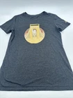 This is a New Balance NYC Marathon T-Shirt for women in size Large. It features a graphic print in gray, a crew neck, short sleeves, and a pullover closure. Made of 100% cotton, this classic fit T-shirt is perfect for activewear. Easy to care for, it is a comfortable and stylish choice for casual wear or working out. *Check the images above for the flaws and measurements of the item.