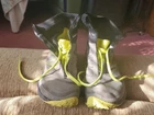 The New Balance MT110 Trail Running Shoe is designed for women with a US shoe size of 7. It comes in a gray color with highlighter yellow accents. This sneaker is perfect for athletic activities, particularly trail running. The model is the New Balance Trail, and it is made by the popular brand New Balance.
