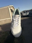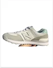 These New Balance shoes are a women's size 9 in a stylish blue color with a solid pattern. They feature the New Balance logo as an accent and are part of the 574 product line. Designed for summer wear, these athletic sneakers have a theme of golfing shoes, making them both fashionable and functional for active pursuits. Perfect for women looking for a comfortable and sporty shoe option.