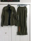 Step up your activewear game with this Men's New Balance USMC Marines Track Suit Set. The set includes a track jacket and track pants, all in a stylish green color with a marine theme. The design is perfect for any occasion that requires warm-up gear. This tracksuit set is ideal for men who are looking to make a statement with this stylish, comfortable, and versatile tracksuit set. Jacket size Medium Long, Pants size Medium Regular. Polyester, reflective strips, drawstring wait on pants. Good used condition! Buy it now or make an offer...don't miss out! Questions welcome and check out my other name brand clothes...i combine shipping! Inseam 32" Pit to pit 21.5" NICE!