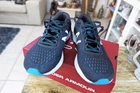 This is a pair of women's New Balance running shoes in a beautiful blue color. They are size 9 US, 40 EU, and 6.5 UK. The shoes are signed and feature the New Balance logo as an accent. They are athletic sneakers suitable for activewear or casual occasions, making them versatile for various activities. Perfect for those looking for a stylish and comfortable option for their footwear collection.