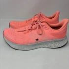 These New Balance Women's 1080 Fresh Foam sneakers in pink, size 11, feature a lace-up closure and a low-top shoe shaft style. Made with a comfortable blended fabric upper and a cushioned, breathable foam insole. The rubber outsole provides traction, making them suitable for activities like walking, running, and training. With a colorful design and the New Balance logo as accents, these sneakers offer a stylish and supportive option for casual or workwear occasions in various seasons. Couple small spots on these shoes overall in good condition. Please refer to photos!