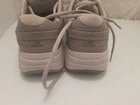 Elevate your athletic style with these New Balance Women's Walking Sneakers. Featuring a lace-up closure, these sneakers come in a solid beige color with a leather upper material and a rubber outsole. The shoes are equipped with cushioned, comfortable, and breathable features that make them perfect for a range of activities from walking to gym training and bodybuilding. With a performance-driven design, these sneakers are perfect for those who love to stay active in all seasons - summer, fall, and spring. The New Balance Women's shoe Size 9 Beige Walking Sneakers are a great addition to any athleisure or sports-themed outfit. Get your hands on them now and step up your fitness game!