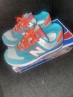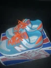 The New Balance sneaker is a pre-owned athletic shoe designed for women in a sleek gray color. With a US shoe size of 6, this sneaker is perfect for women who enjoy sports and active lifestyles. The New Balance shoes are used with defects shown on pictures. Have a cress on shoes. Also the back of shoes have a slight wear & tear. These shoes have not been worn much and could definitely last a long time with great care.