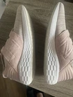 New Balance color is like a muave pink smoke and pet free home no rips or tears