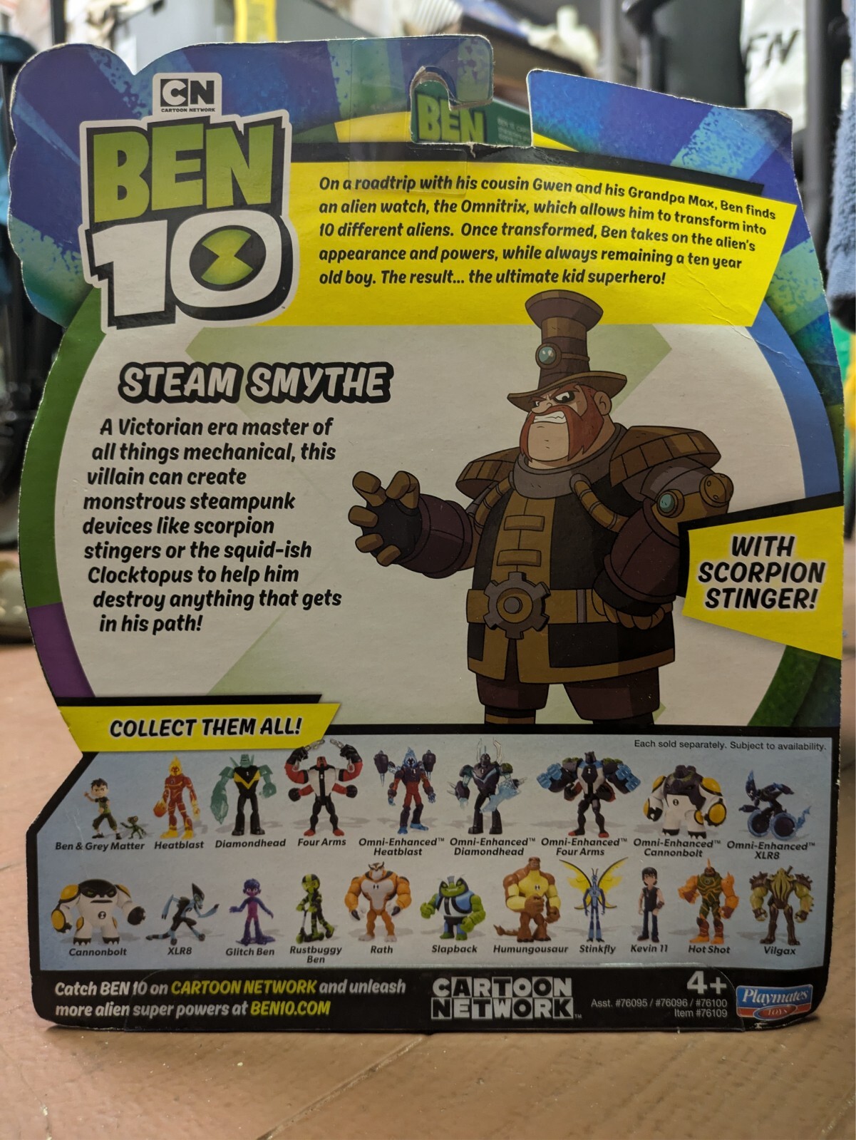 Introducing the latest addition to your Ben 10 collection - the 5-inch Action Figure of Steam Smythe from Playmates Toys. This highly detailed figure features Scorpion Stinger as the featured person/artist and is packaged in its original, unopened packaging. Recommended for ages 4 and up, this toy is perfect for fans of the Ben 10 franchise and action figures alike. With its intricate design and attention to detail, this Playmates Toys action figure is sure to impress both collectors and children alike. Add it to your collection today and watch as Steam Smythe battles the villains and saves the day.