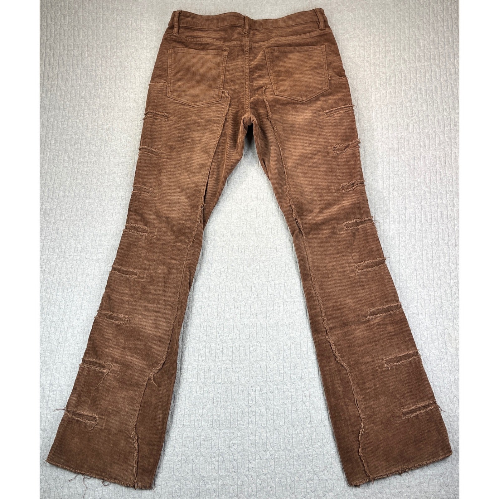 Excellent new with tags condition please examine all photos for flaws, measurements and exact fit Department: Men Style: Flared Inseam: 33 Waist Size: 30 Type: Jeans Fit: Slim Theme: Hipster, 90s Fabric Type: Corduroy Features: Distressed, Pockets Material: Cotton Accents: Fringe, Button Closure: Button, Zip Pattern: Solid Season: Fall, Winter Pocket Type: 5-Pocket Design, Slash Pocket Keywords: Corduroy pants, Distressed denim, Flare jeans, Brown pants, Mens fashion, Streetwear, Patchwork pants, Designer denim, Casual wear, Modern vintage, Fashionable pants, Unique trousers