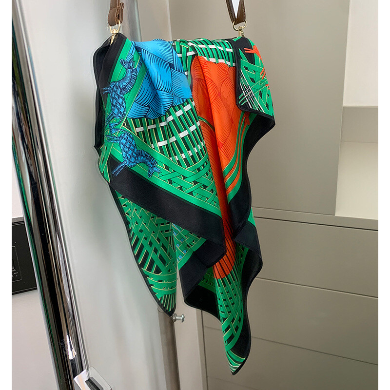 $ 20.9100% Silk Green Mace Print Scarf Double-Layer Ribbon 150X15cm Luxury Boutique