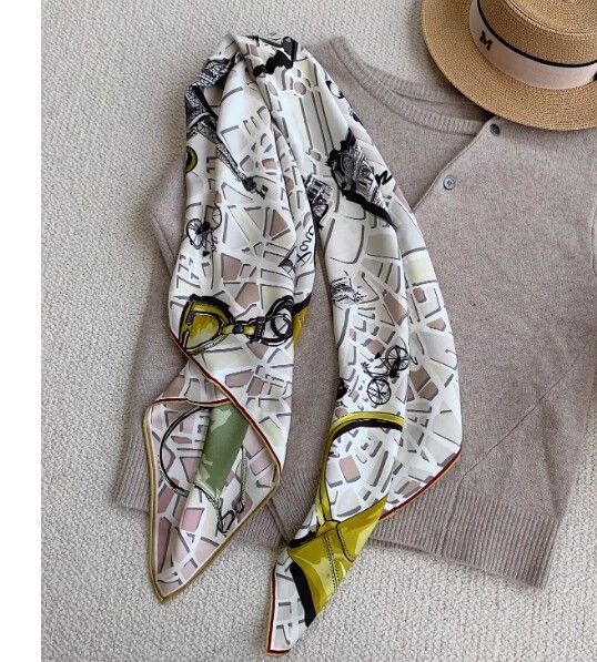 New Boutique 24 Momme Silk Double-Faced Satin Hot Air Balloon Print Scarf 110cm