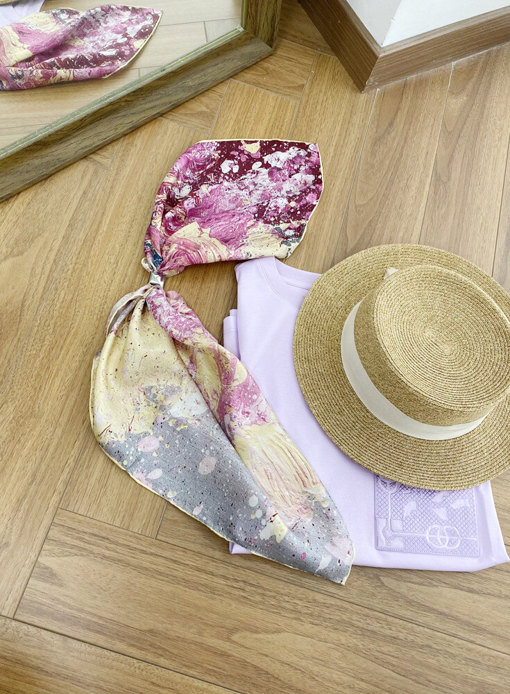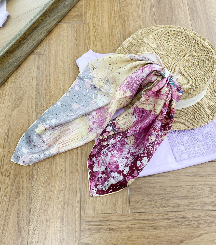 $ 8.28New Boutique 14Momme Twill Silk Scarf Necktie Hairband Print Square Scarf 53cm"