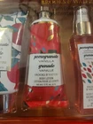 NEW Brooks & Waters Pomegranate Vanilla Bath Collection set Includes: Shower gel 5 fl. oz. Body Scrub 4 fl. oz. Body Lotion 2 fl. oz. Body Spray 2.1 fl. oz. Delicately scented and made with shea butter extract for clean, soft skin