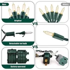 *Outdoor/Indoor Decorative String Lights 17.7FT 50 mini LED Clear Fairy Lights Warm White, super bright and long-playing. *Waterproof battery box, portable and easy to use. Battery case is with a hanging hole, which can be easily hung on the wall. *3 x AA Battery operated 50 LEDs super bright clear mini string lights, bright LED bulbs with PC breakage-proof cover. *Strong insulated green wire, perfect to decorate Christmas trees, wreaths, or anything natural colored like that. *Eight modes for you to choose your favorite one: Combination,In Waves, Sequential, Slo Glo, Chasing/Flash, Slow Fade, Twinkle/Flash, Steady On. *Auto timer function: turn on the light, it will be 6 hours on and 18 hours off everyday automatically, which is convenient and energy-saving. *IP44 Weatherproof, can be used for both outdoor and indoor decoration: living room, bedroom, kitchen, bathroom, dining room, home ,office, dorm,hallway, porch, garage, patio. *Suitable for any celebration occassions such as wedding, party,birthday, Christmas, Thanks Giving Day, Halloween,Valentine's Day, New Year, indoor and outdoor decorations. General Specifications: * Light color: Warm White * Wire color: Green * Battery: 3 x AA size 4.5 V (not included) * LED quantity: 50pcs, 50 LED at 10cm/3.94in spacing * Total Cable Length: 5.4m/17.7ft * Time Control Function : 8 modes with a time control function 6 hours "ON" and 18 hours "OFF" * Weatherproof: IP44, can be used for outdoor Package List: * 1 x Battery String Lights * 1 x User manual DETACHABLE LED BULBS - LED string lights are with PC breakage-proof cover, super bright and eco-friendly.The bulbs can be detachable. If one bulb burns out, the rest will stay lit.Strong insulated green wires are great for Christmas decorations 8 LIGHTING MODES - 8 setting controller, includes one steady on and 7 flashing modes to satisfy your diverse needs. Suitable for any celebration occassions and holiday decorations BATTERY OPERATED - Battery powered string lights,require 3 x AA 4.5V Batteries (Not Included); No wiring or socket needed, can be used anywhere conveniently. Safe, power saving and low cost SMART AUTO TIMER - Automatically keep 6 hours on and then 18 hours off each day, to free your hands and avoid forgetting to turn off the Christmas lights and save energy greatly SAFE&WATERPROOF - Waterproof battery box, can withstand any weather condition, perfect for both indoor and outdoor decorations, won't overheat after prolonged working and safe touching