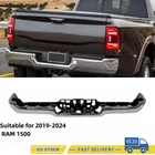 NEW REAR STEP BUMPER FOR RAM 1500 PICKUP 2019-2024 RAM 1500 New Body Style RAM 1500 For Models With Single Exhaust High Polished Chrome Finish Includes Face Bar and Reinforcement Direct OE Replacement