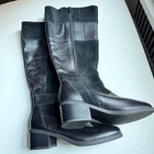 Elevate your style with these chic Clarks knee-high boots in black suede/leather. Featuring a round toe and adjustable zip closure as well as soft cushion, these boots are both comfortable and fashionable. Perfect for any occasion, whether it be travel, business, or casual wear, these boots will surely become a staple in your wardrobe. The Clarks collection is known for its quality and these boots are no exception. With a mid-height block heel and medium calf width, they are designed to provide both comfort and support. The solid pattern and black color make them versatile and easy to pair with any outfit. Don't miss out on the chance to add these stylish boots to your collection. If you have any questions ask before buying. From no smoking, no pets home. Shipping price for 48 continental US states only. For international shipping ask quotes.