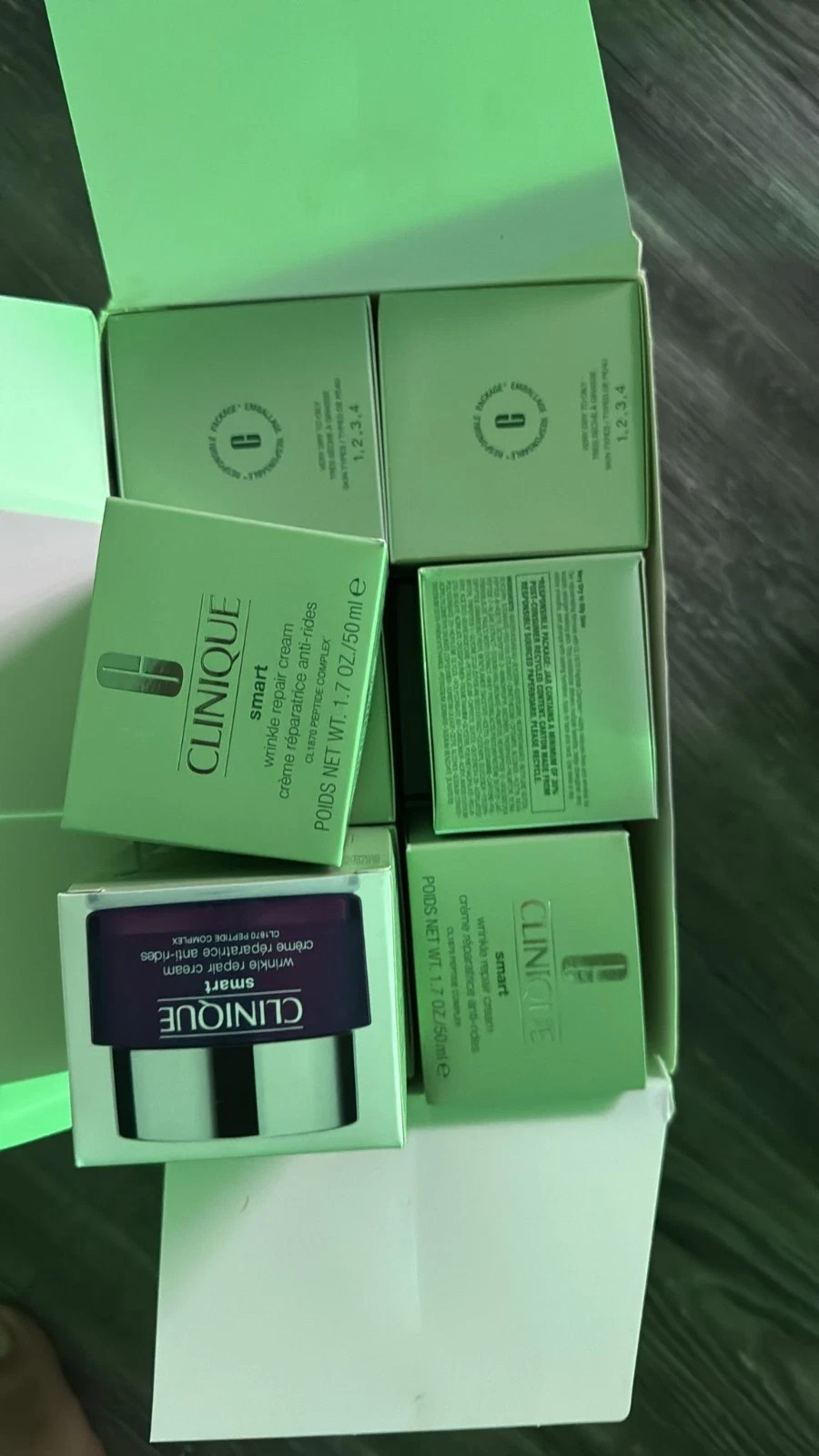 Clinique Smart Clinical Repair™ Wrinkle Correcting Cream 1.7 oz / 50 ml – Brand New & Sealed Experience advanced wrinkle-fighting technology with Clinique Smart Clinical Repair™ Wrinkle Correcting Cream , a luxurious moisturizer that strengthens, hydrates, and visibly smooths your skin for a youthful, rejuvenated look. Product Highlights & Features ✅ Powerful Anti-Aging Formula: Targets fine lines and deep wrinkles for visibly smoother, firmer skin. ✅ Clinique’s Smart Repair Technology: Helps boost natural collagen and strengthens skin’s structure for long-term results. ✅ Deep Hydration: Provides intense, long-lasting moisture to improve elasticity and softness. ✅ Dermatologist-Developed: Allergy-tested, fragrance-free, and safe for all skin types — even sensitive. ✅ Lightweight & Fast-Absorbing: Creamy yet non-greasy texture melts into the skin instantly. ✅ Strengthens Skin Barrier: Helps protect against environmental stress and dryness. ✅ Clinically Proven Results: Skin looks plumper, smoother, and more radiant with consistent use. ✅ Authentic & Fresh: 100% Genuine Clinique product — brand new, factory sealed, and never opened. Product Details Brand: Clinique Product Name: Smart Clinical Repair™ Wrinkle Correcting Cream Size: 1.7 oz / 50 ml Condition: Brand New & Sealed Skin Type: All Skin Types Formulation: Rich Moisturizing Cream Shipping & Handling ✅ Fast & Free Standard Shipping (within the U.S.) ✅ Securely packed to ensure safe delivery ✅ Ships within 1 business day of payment