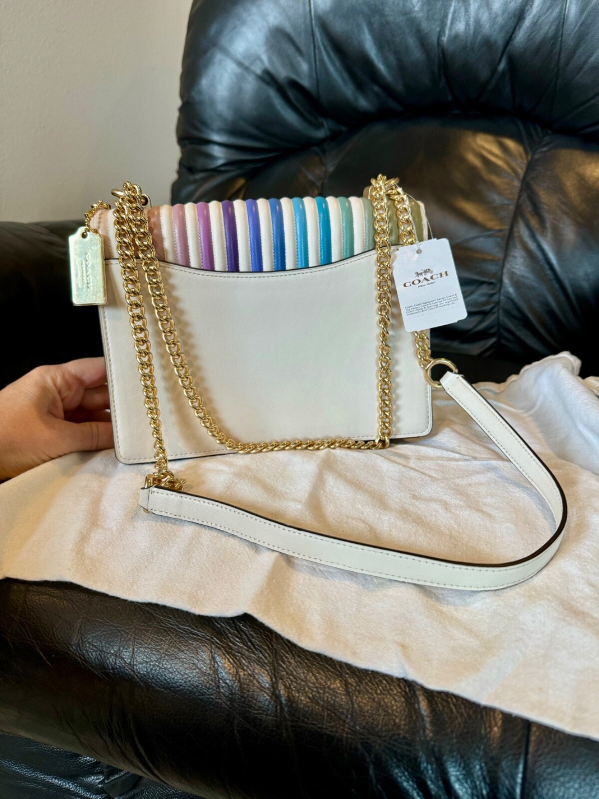 Absolutely love this Coach crossbody! The leather is gorgeous—smooth, textured, and snake-embossed details add a luxe touch. Super practical with multiple pockets and a versatile strap that adjusts for different looks. Perfect size for essentials without being bulky. Still has that new-bag feel with tags attached—definitely worth it!