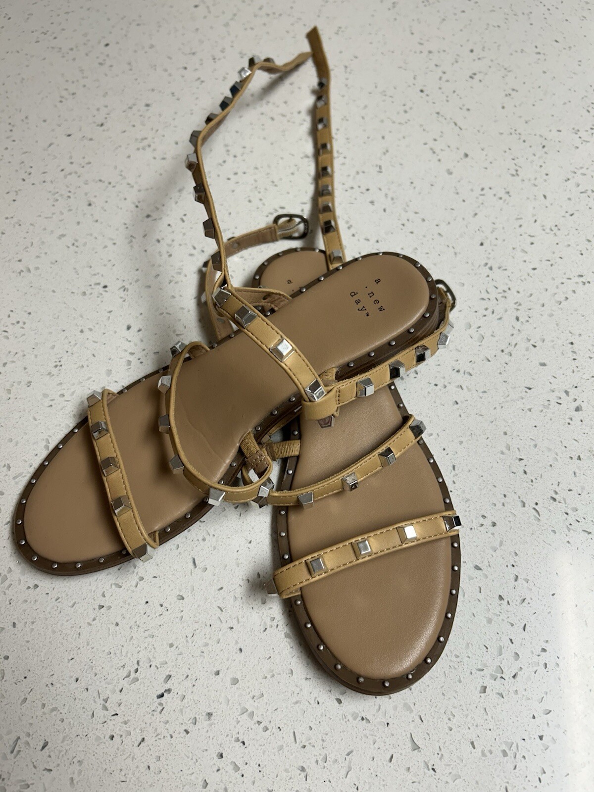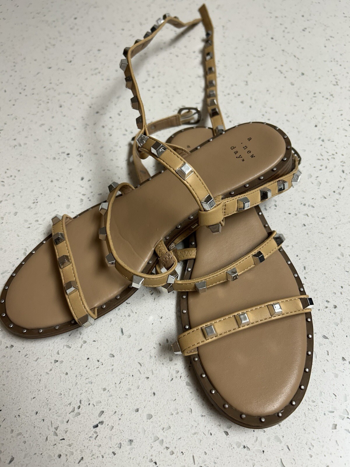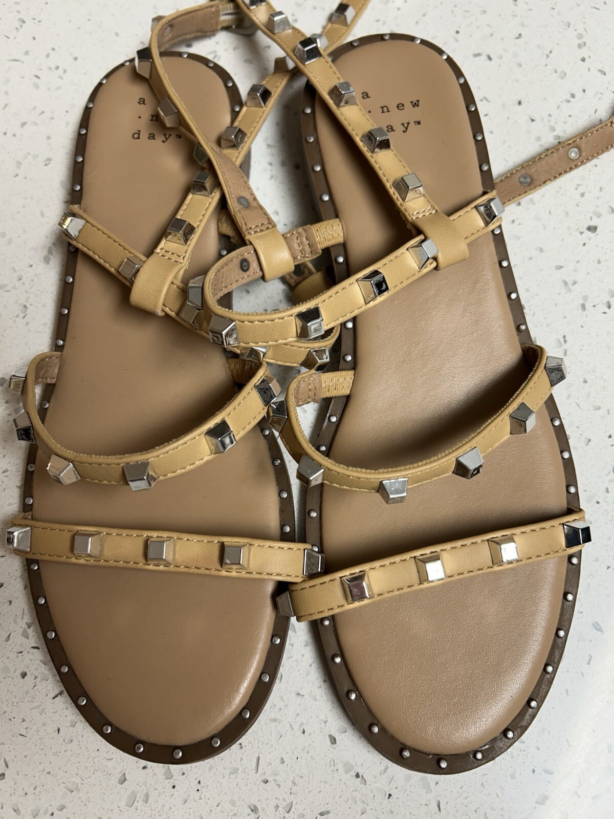 NEW A New Day Women's Astrid Studded Strappy Sandals Tan Size 7