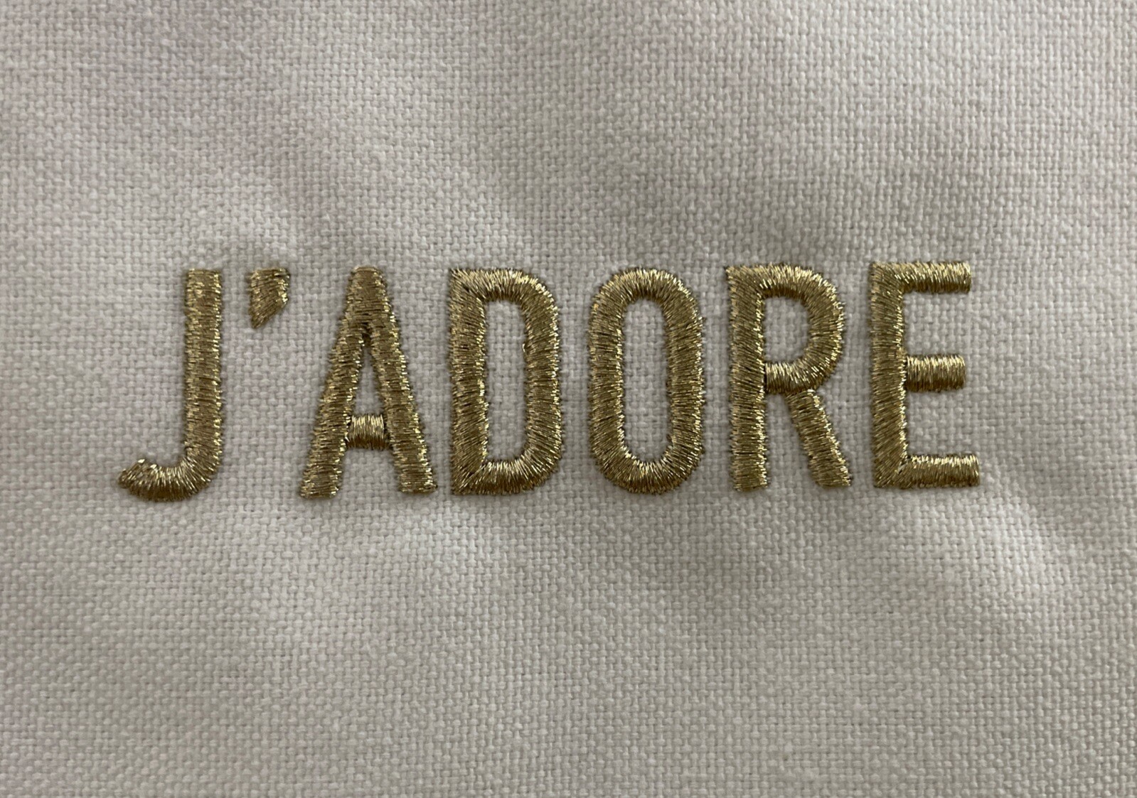 J’adore Dior Large SLIM Canvas Clutch Makeup Bag Zipper Closure NIB. Made of white/ivory cotton with matching faux leather trim Embroidered J'adore logo written in gold Secure gold-tone top zipper with gold metallic edging Lined in white polyester Size is 10.5 X 7.5" T his item is BRAND NEW IN BOX, NEVER USED. All of my items are 100% authentic. Only UNUSED items can be returned or exchanged. Returned item must be in its original condition. Refund or exchange will be made only after original item purchased has been received. From a pet and smoke-free home. Ask questions before buying. Photos are for illustration only; please check colors in store or online before you buy. Thanks for looking - check out my other items!