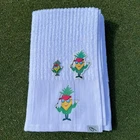 Hello friends or might I say "patrons".....We've decided to pay homage to that little April tradition with our pineapple mascot. It's every golfers favorite time of year and probably most everyone's favorite tournament to watch. With how hospitable and iconic the Green Jackets are at the tournament...we've taken our Pineapple Hospitality Mascot and decked him out in the iconic Green Jacket. Keeping it as exclusive as the tourney....we've made this a limited edition collection. There is a gift set option for all 3 items which includes the cutout ball marker, Tour caddie golf towel and a sticker. Sorry no golden ticket to the tournament though. So no matter how you swing, this gift set will make any golfer feel like they got a piece of that April tradition. Our caddie or caddy golf towel (p otato, potahto ) is printed with a hybrid screen print heat transfer process in color . This golf towel is a super soft, durable golf towel and a solid bag swag addition. Just like the Tour Players use, although they pay someone to wipe down their clubs and fill their divots. Makes a great golf accessory gift. Size: 22" x 44" Terrycloth, 86% cotton, 14% Polyester The cut out ball marker is 1.5" or 40mm tall A sticker is included with every purchase.
