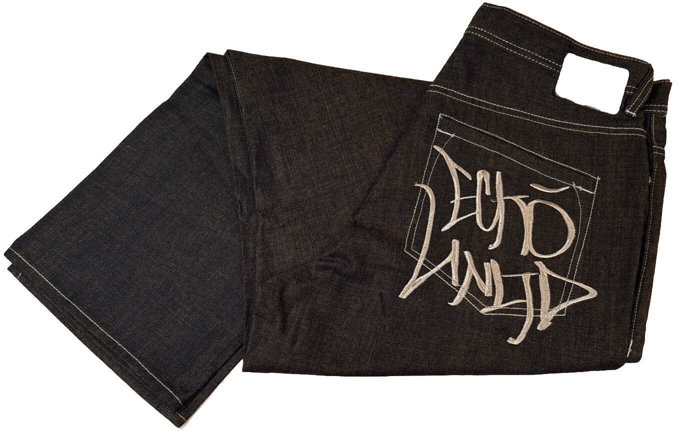 NEW Ecko Unltd Jeans 42 Pants Embroidered Baggy Fit Black Indigo Y2K NOS Brand new with the tags 42w x 35 inseam (Y2K style) Black indigo wash with brown tones To upcycle, I reuse shipping material as often as possible. Buy more from my store and save on shipping.